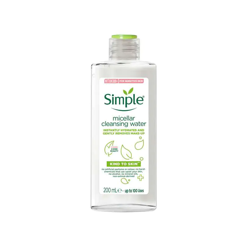 Simple Micellar Cleansing Water is our most advanced yet gentle facial cleanser to date. It helps remove contaminants known to irritate skin and leaves it clean and fresh. It instantly boosts skin hydration by 90%! This innovative facial cleanser is made with skin-loving ingredients perfect for all skin types, including Vitamin B5, Vitamin E and Triple Purified Water. It contains no artificial perfumes, no color or dye and no harsh chemicals that can upset your skin, making it perfect even for sensitive skin. Dermatologist tested and approved. Unclogs pores and tones skin. Hypoallergenic, non-comedogenic.