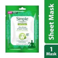 Simple De-Stress Sheet Mask, infused with aloe and multi-vitamins, helps to soothe and brighten stressed skin in just 15 minutes – no mess, no need to rinse.