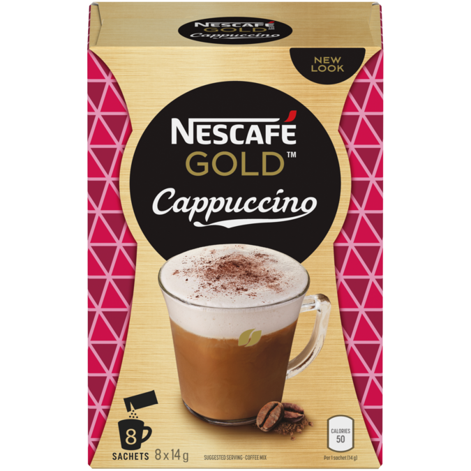 Discover indulgent moments brewed with the perfect balance of select, high-quality ingredients. NESCAFE GOLD Cappuccino Coffee Mix easily crafts a delicious, coffee-shop inspired cappuccino you can whip up at home – no barista required. A great way to serve up and share a delightful combination of smooth coffee and mouth-watering foam in your perfect cup.